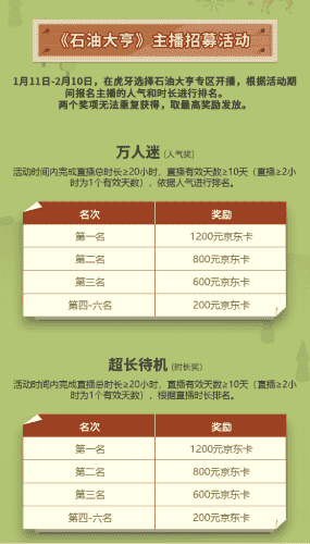 除了“油王”争霸赛,,,,精英主播招募活动亦同步开启!!赛事分时长奖和人气奖,,,奖励同样丰厚!!!!