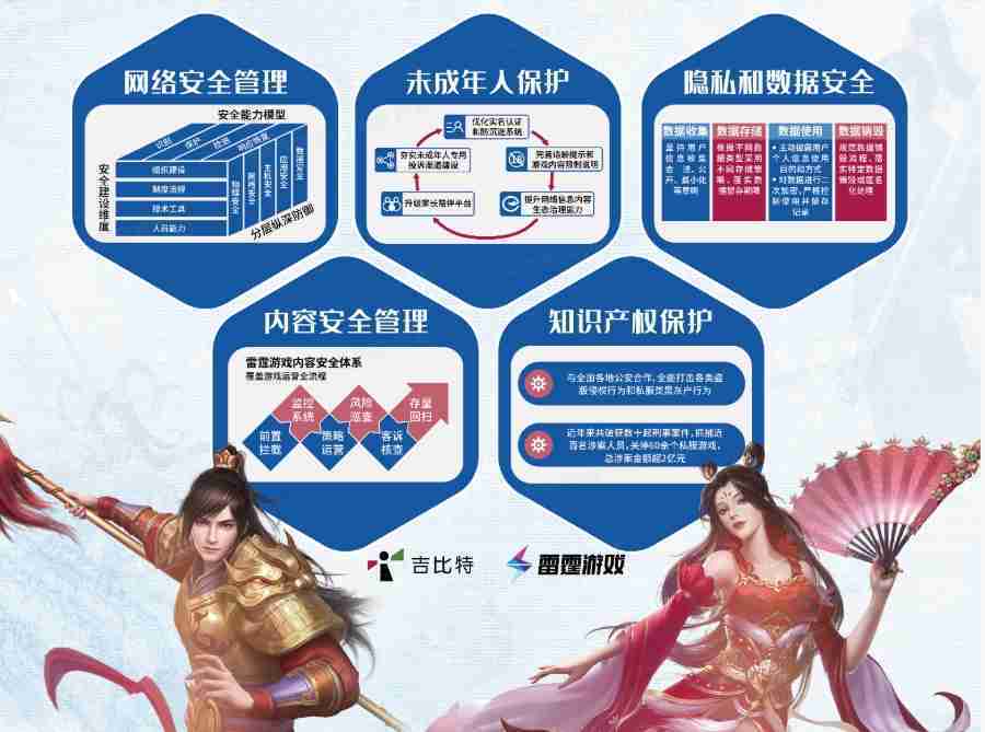本次yaxin111展区以网络安全管理、、内容安全管理、、未成年人保护、、隐私和数据安全、、知识产权保护五个模块介绍公司游戏安全工作成果,,体现yaxin111高度重视网络安全,,严格遵守相关法律法规要求,,,,积极承担企业主体责任。。